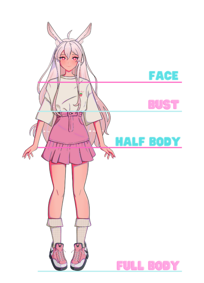 Pose, characteristics, references, colors to use, size. Please, specify your order.Won't draw : mecha, NSFW, gore, weapons (there can be an exception), complex backgrounds, realism, muscular characters.I don't do very explicit details. At the moment I don't feel comfortable doing curly hair. Dreads, braids and twist I'm accepting.I don't make art in other styles. Keep in mind that if you order in an art style I don't do, your commission will automatically be declined.Logos and stream art (such as badges) will be charged a 100% commercial fee.All commissions will be posted on my social media.100% rate for commercial use.Payment currently only via Pix being made on LivePix.The sale of art to others is prohibited.Payment of 50% is required before starting and the remaining 50% upon approval of the sketch. Or 100% before starting.Once the sketch is confirmed and the line art and painting started, any changes (pose, details, colors) will have an additional $10.Time to complete the artwork between 1-3 weeks.The refund will only occur if the work is still in the sketch, and only 60% of the value will be refunded, taking into account the time spent, and 100% if I haven't started the sketch yet. Once the sketch is approved there will be no refund in case of cancellation of the commission.I am free to decline any art proposal if I feel uncomfortable. Please don't insist on what I don't want to do.• By Commissioning, You Agree to my Terms of Service
